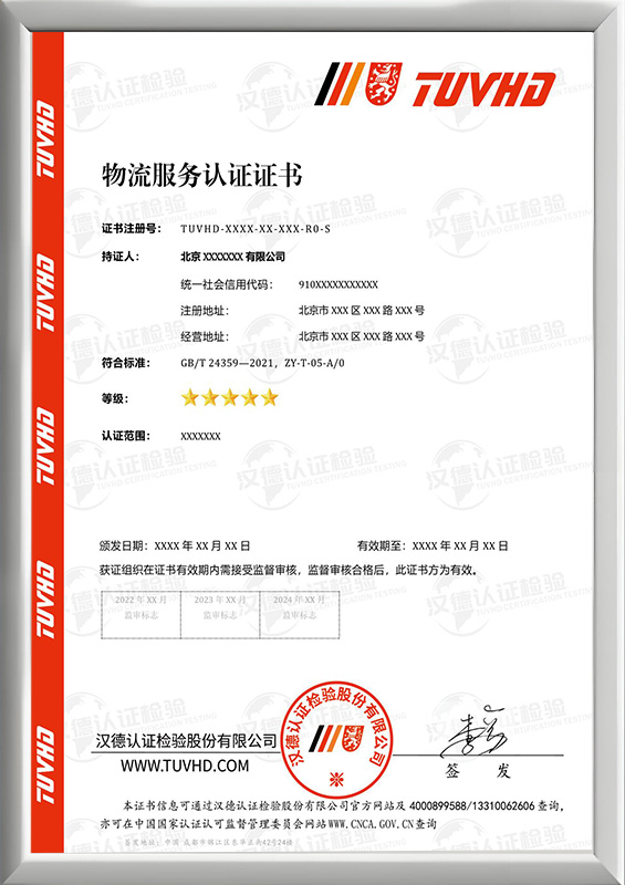 Logistics Service Certificate